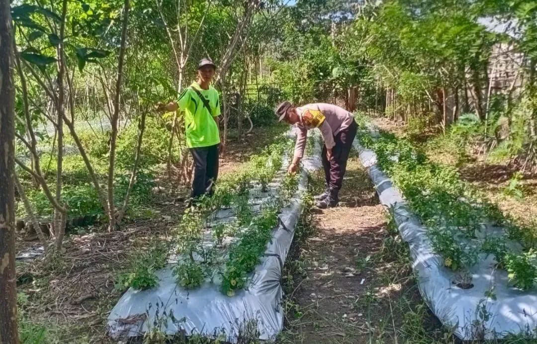 Personel Polsek Kisam Tinggi (Kisting) budidayakan warga memanfaatkan pekarangan dengan menanam cabai dan sayuran. -Foto: Hamdal Hadi/Harian OKU Selatan.-