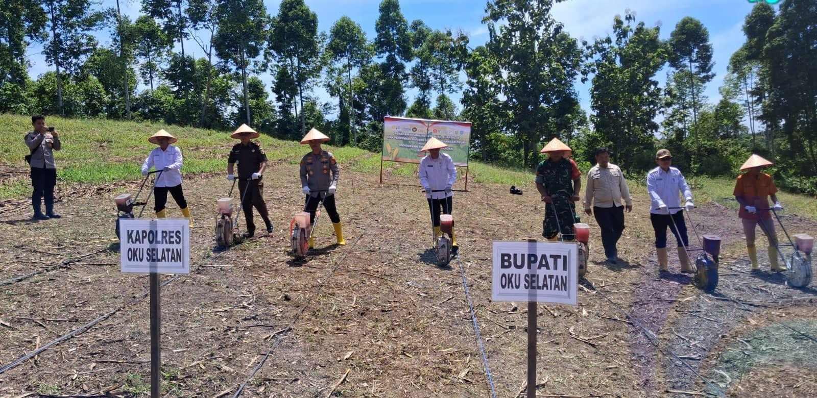Hadir dalam kegiatan tersebut Kapolres OKU Selatan AKBP I Made Redi Hartana, S.H., S.I.K., M.I.K., unsur Forum Koordinasi Pimpinan Daerah (FKPD), Kadin Pertanian, Kadin Ketahanan Pangan, Kepala BPPS OKU Selatan, UPTD Dinas Kehutanan KPH Wilayah VII Mekakau Saka, Camat Muaradua, Kepala Desa Gunung Tiga, serta para PPL dari Dinas Pertanian dan Dinas Kehutanan. Turut hadir pula kelompok tani (Poktan) dari Desa Gunung Tiga.